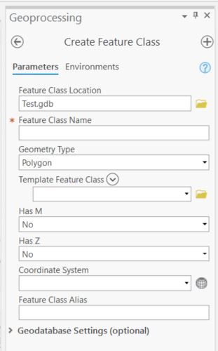2. Buscar/seleccionar la herramienta de geoproceso Crear una clase de entidad.
